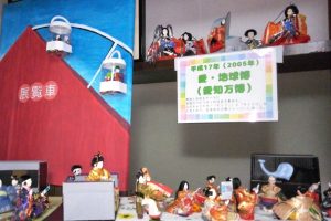 毎年、ボランティアの方々が中心となって制作・展示している「福よせ雛」。今年のテーマは「昭和100年 タイムトラベル」です。